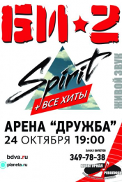 24 октября группа «БИ2» выступит в городе Донецке, на Арене «Дружба» начало концерта в 19:00. Программа с которой приедут музыанты называется «Spirit» + все хиты! То есть группа собирается исполнить не только песни из нового альбома но итак же все хиты, которые известны широкой публике по саундтрекам к фильмам Брат 2 (песня «Полковнику никто не пишет», «Варвара», «Счастье», играют самих себя